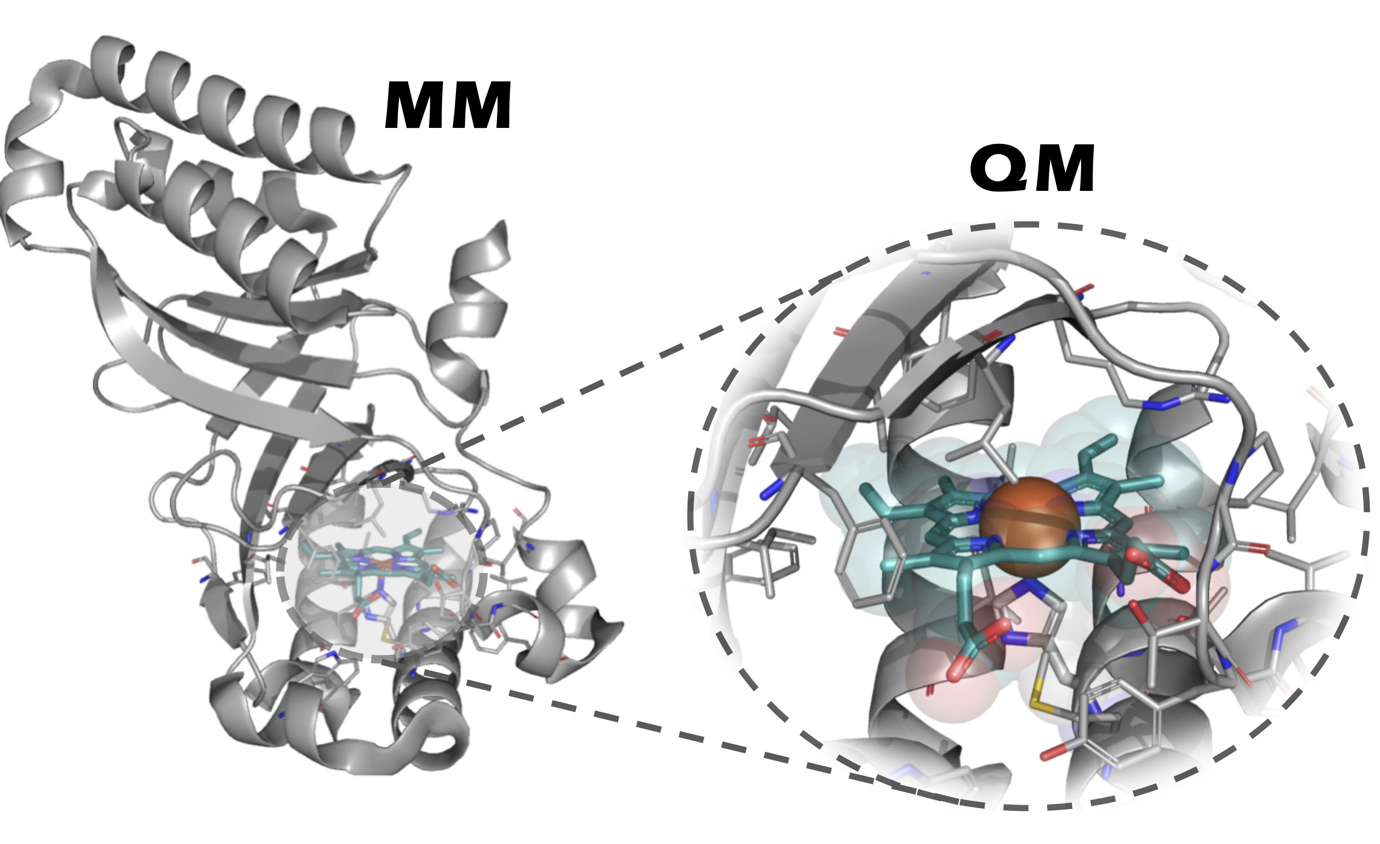The computational inefficiency of most quantum mechanical methods hamper either a full description of enzymes at the QM level or a sufficiently extensive sampling to describe both enthalpic and entropic effects appropriately. QM/MM approaches offer solutions that combine the best of both worlds. Molecular dynamics simulations can be coupled with a plethora of QM methods (Poliak, 2025), specifically suitable for specific questions. Recently tremendous progress has been made in the use of machine-learned potentials, which learn quantum mechanical interactions from an appropriate training set. The inclusion of these methods in QM/MM settings, furthermore, allows us to resolve interfacial limitations of traditional QM/MM methods (Lier, 2022; Crha, 2025). Inclusion of reactivity and enzymatic properties of proteins through electrostatic and dynamic effects are among the next challenges to tackle computationally.