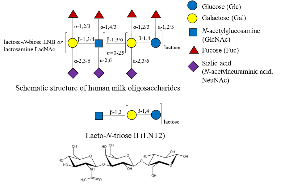 Selvamani, S., Kapoor, N., Ajmera, A., El Enshasy, H. A., Dailin, D. J., Sukmawati, D., ... & Abomoelak, B. (2023). Prebiotics in New-Born and Children’s Health. Microorganisms, 11(10), 2453. Intanon, M., Arreola, S. L., Pham, N. H., Kneifel, W., Haltrich, D., & Nguyen, T.-H. (2014). Nature and biosynthesis of galacto-oligosaccharides related to oligosaccharides in human breast milk. FEMS Microbiology Letters, 353(2), 89-97.